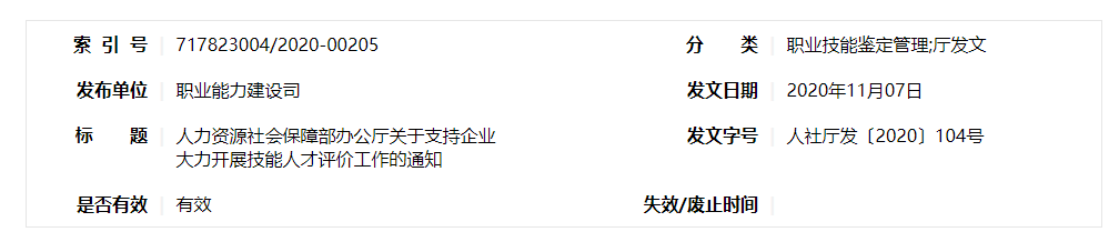 为深入贯彻习近平总书记关于健全技能人才培养、使用、评价、激励制度的重要指示精神,深化技能人才评价制度改革,现就做好支持企业大力开展技能人才评价工作有关事项通知如下。